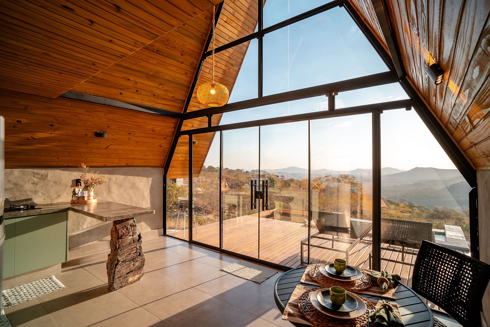 Com uma estrutura completa, nosso chalé oferece tudo o que você precisa para relaxar e desfrutar da natureza com o máximo conforto. Confira os principais diferenciais que farão da sua estadia um momento único: - Cabana tipo A frame com cama queen e banheiro espaçoso, para seu total conforto e privacidade. - Piscina aquecida (solar e elétrica), perfeita para apreciar o pôr do sol deslumbrante. - Cozinha completa, equipada com geladeira, cooktop e utensílios para suas refeições. - Roupas de cama premium e louças selecionadas, incluindo taças de vinho e panelas italianas, para garantir uma experiência sofisticada. - Churrasqueira a carvão, ideais para momentos especiais em boa companhia. - Deck para contemplação, um convite ao relaxamento enquanto você aprecia a paisagem natural. - Jardim cuidadosamente planejado, valorizando a beleza do Cerrado e criando um ambiente acolhedor e tranquilo.